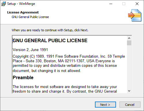 Figure 2‑38: WinMerge License agreement window