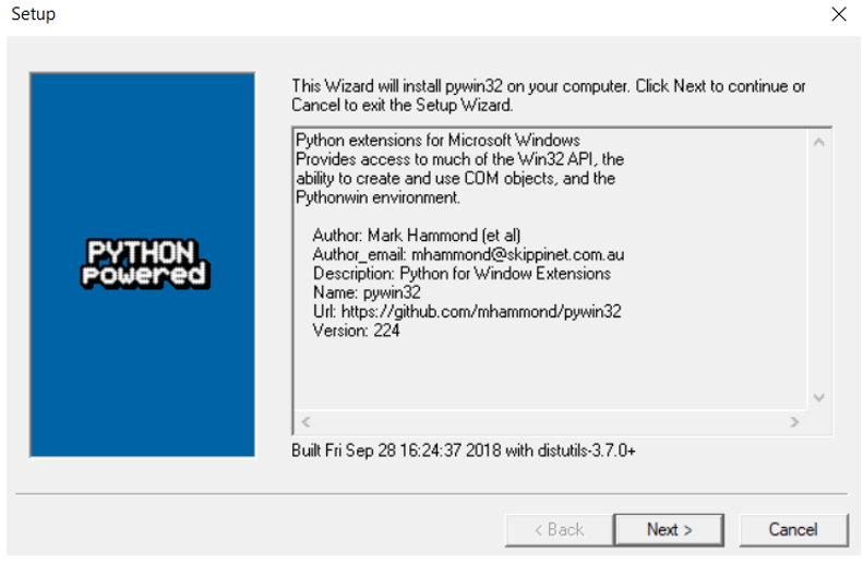 Figure 2‑47: pywin 32-224 installation wizard window