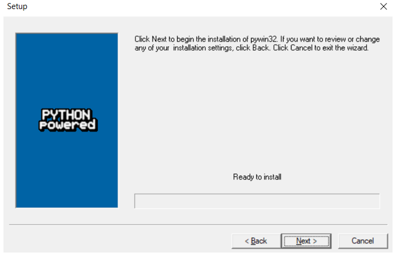 Figure 2‑49: Select Next button to install of pywin32