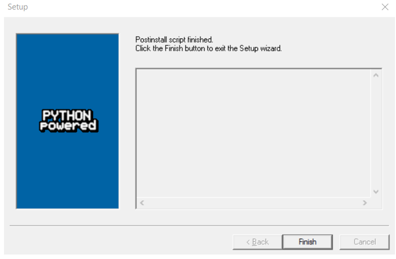 Figure 2‑50: Select Finish button to complete pywin installation