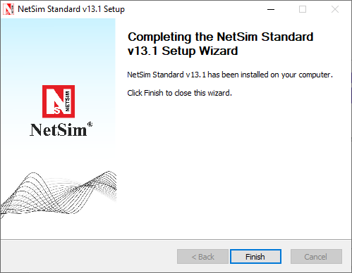 Figure 2‑14: Select Finish button to complete the installation process of NetSim.