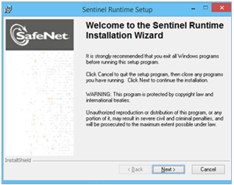 Figure 2‑57: Sentinel Runtime Setup window and select Next button