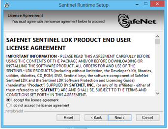 Sentinel Runtime Setup License Agreement appears. Read the license agreement carefully, scroll down to read the complete license agreement. If the requirement of the license agreement is accepted, Click on I accept the license agreement and click on Next button else quit the setup by clicking Cancel button.