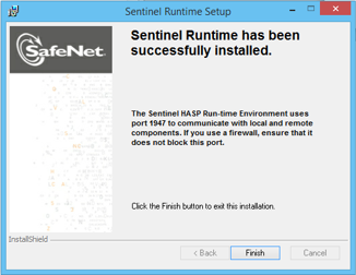Once the Sentinel Runtime is installed successfully, click on Finish button.