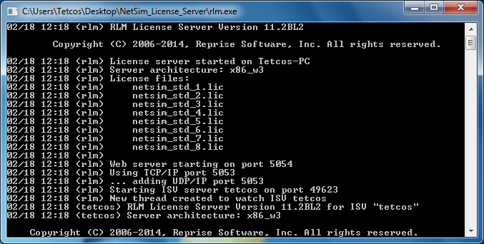 Note*: For running NetSim, rlm.exe must be running in the server (license server) system and the server system IP address must be entered correctly. Without running rlm.exe, NetSim* won't run.