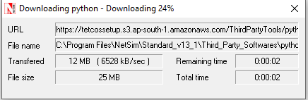 If the PC/VM is connected to the Internet third party tools will get downloaded from our NetSim servers (If the third-party tools are not found in folder where NetSim.exe is present) and proceeds with installation.
