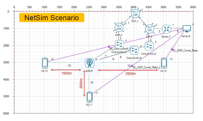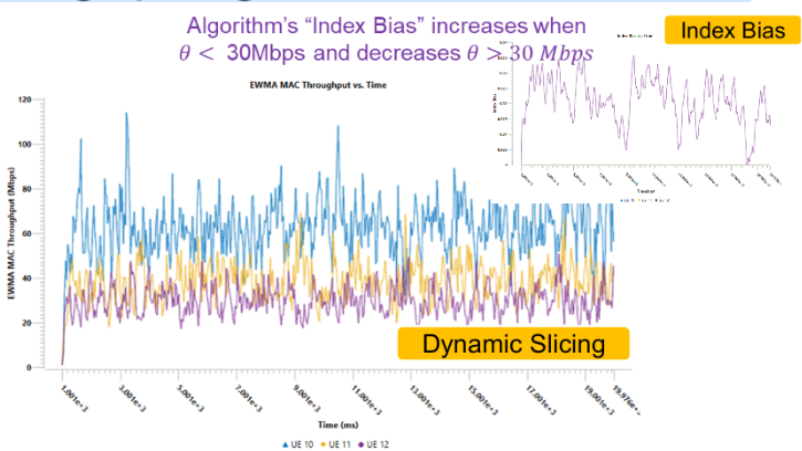 NetSim's in-built dynamic resource allocation algorithm efficiently distributes resources between the slices, ensuring both meet their guaranteed bit rates.